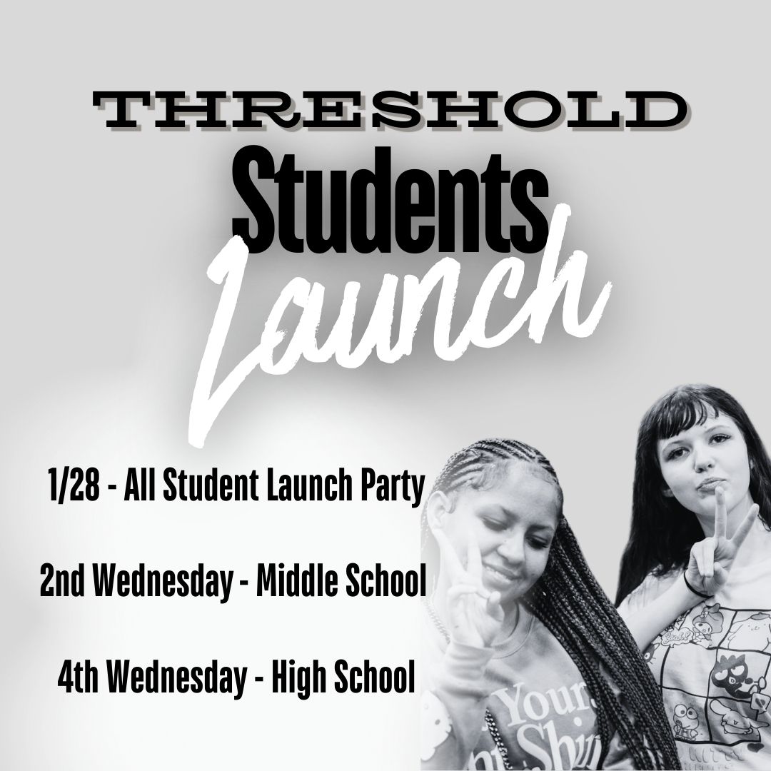 Threshold Students - Come out for a ton of food and games as we kick off 2026 student ministry on January 28 at 6:30pm. Student ministry looks a little different this year. Beginning February 11 - Middle School meets every 2nd Wed. and High School meets every 4th Wed. of the month. Can't wait to see you!!